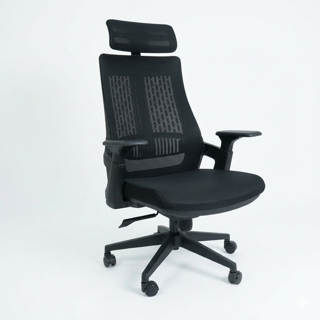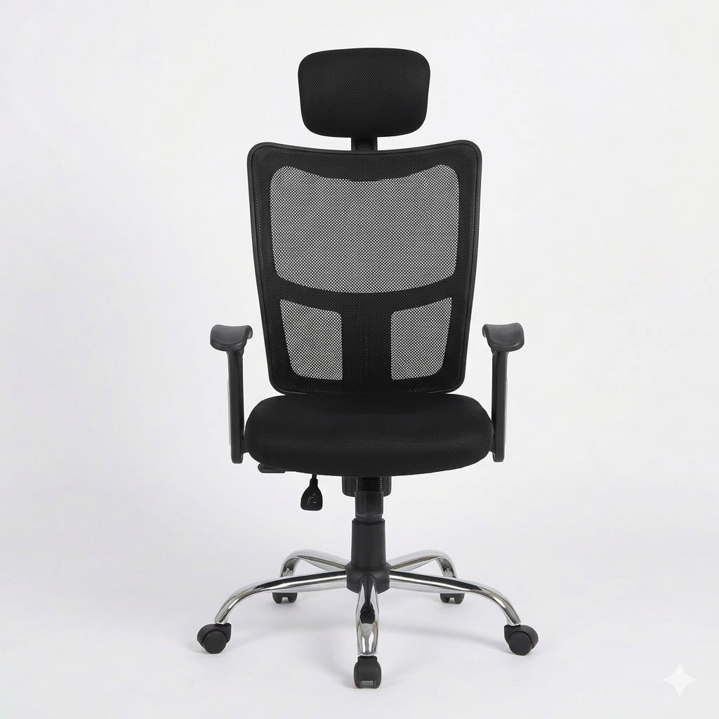 Ergonomic mesh office chair with headrest support, adjustable height, and comfortable foam seating for everyday office use.