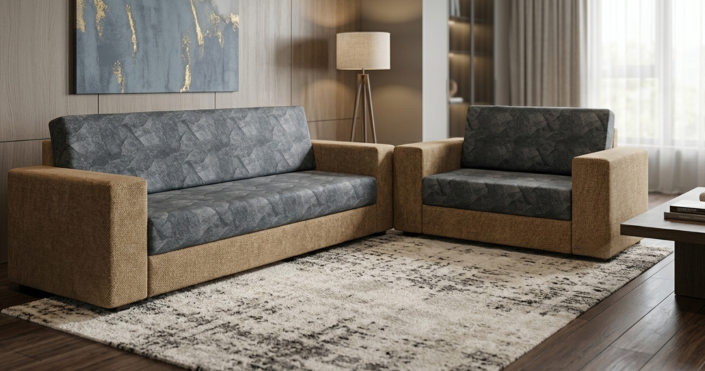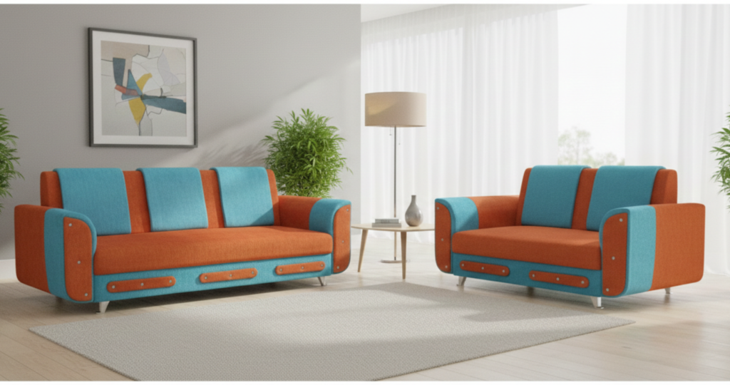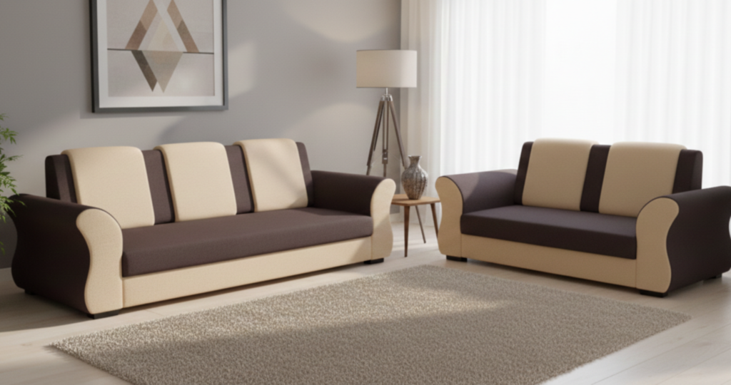 Modern dual-tone sofa set with durable frame and comfortable cushioning, perfect for stylish living rooms and lounges.